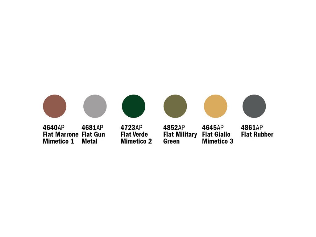 Sada akrylových farieb určených na talianské vozidlá z obdobia druhej svetovej vojny.