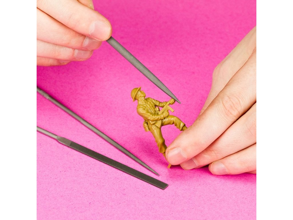 Sada klasických ihlových pilníkov s rôznymi tvarmi prierezov určených na brúsenie plastov, kovov, dreva alebo iných materiálov.
