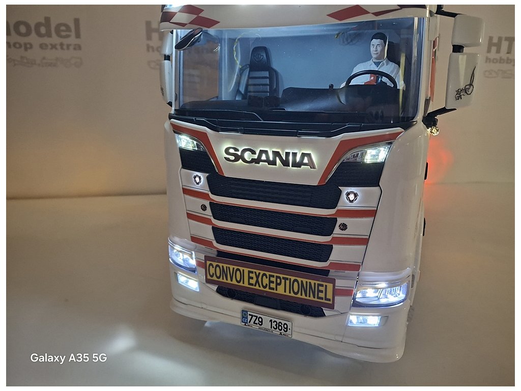 Požiadavka od zákazníka bola, čo najvyššia modelová vernosť k predlohe. Preto má model postavený zo stavebnice Tamiya mnoho doplnkov vyrobených 3D tlačou. Zvuky a svetlá sú ovládané multifunkčnou jednotkou Tamiya MFC-03 a 14-kanálovou RC súpravou Carson. Majáky sú od Š-hobby s novými krytmi. Na zadnej stene kabíny sú pracovné svetlá ovládané RC spínačom Dsys. Stredná značky Carson náprava je riadená a hnaná so samozamykacím diferenciálom. Ovládaná je servom Carson CS-3.