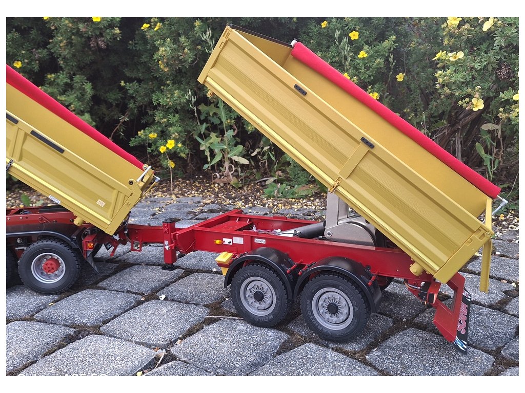Zadanie bolo, že model má byť čo najpresnejší podľa predlohy, takže 90% všetkých dielov je kompletne nových, vrátane diskov všetkých kolies a trúb na streche... Základ šasi Scanie a časť kabíny sú zo stavebnice Tamiya, základ šasi prívesu je od Carsona. Vyklápacie mechanizmy sú Tamiya a Carson. Elektronika je Carson, Tamiya MFC-03, DSYS a Š-hobby. Bolo to veľa práce, ale projekt došiel do zdárneho konca.