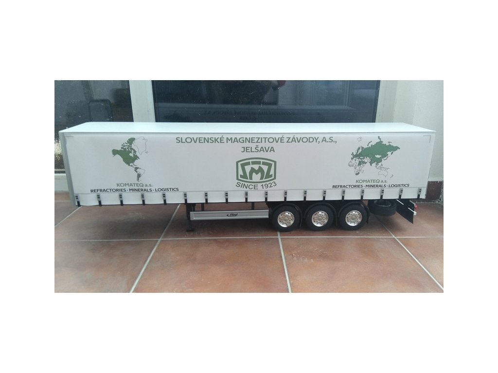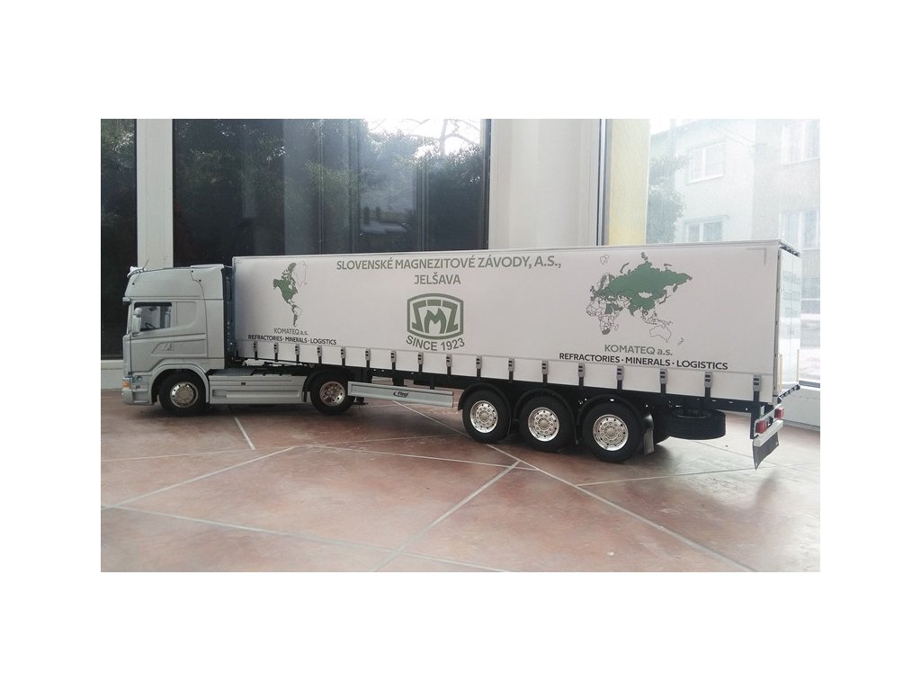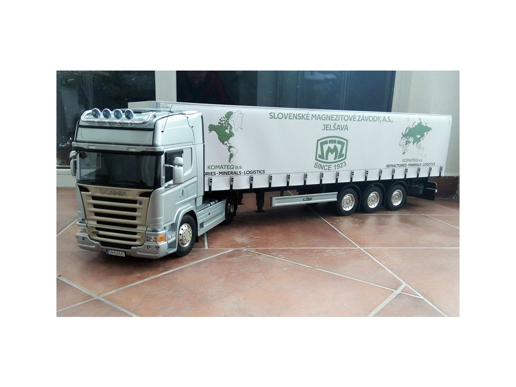 Súprava bola postavená s použitím stavebnice Scania R470 Highline Tamiya 56318 a stavebnice plachtového návesu Fliegl Megarunner Carson 500907235.