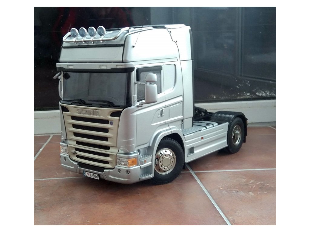 Pôvodná stavebnica ťahača Tamiya bola rozsiahlo prestavaná na Scania R490, čo znamenalo výrobu úplne nových dielov, ako napríklad bočných krycích plechov, slnečnej clony, pomocných zrkadiel a stúpacích plechov za kabínou. S využitím dielov zo stavebnice boli rozsiahlo upravené predný nárazník a diely po bokoch prednej masky. Pre nedostatok času bolo nutné v rámci kompromisu ponechať mrežu prednej masky pôvodnú zo stavebnice, takže nie je úplne presne zodpovedajúca verzii R490. Pridaná je vysoká strešná nadstavba a svetelná rampa (samostatné tuningové diely).