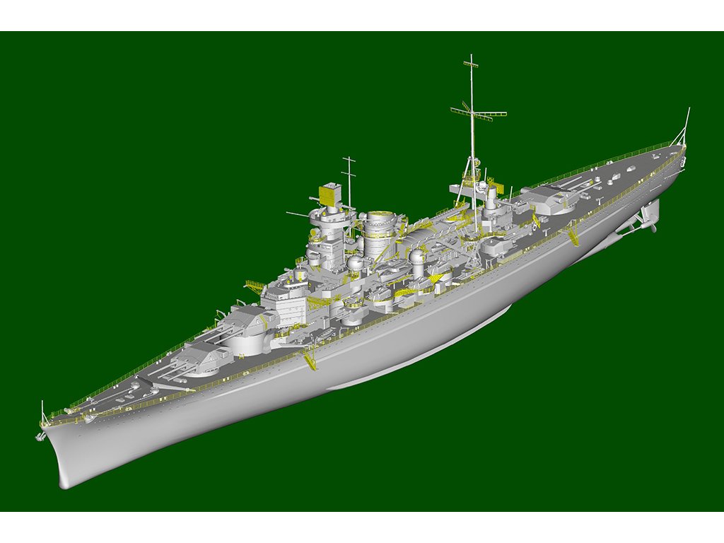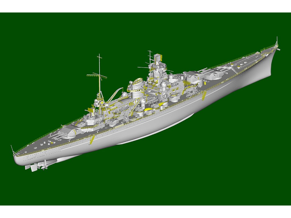 Stavebnica plastového modelu nemeckej bojovej lode používanej počas 2. svetovej vojny.