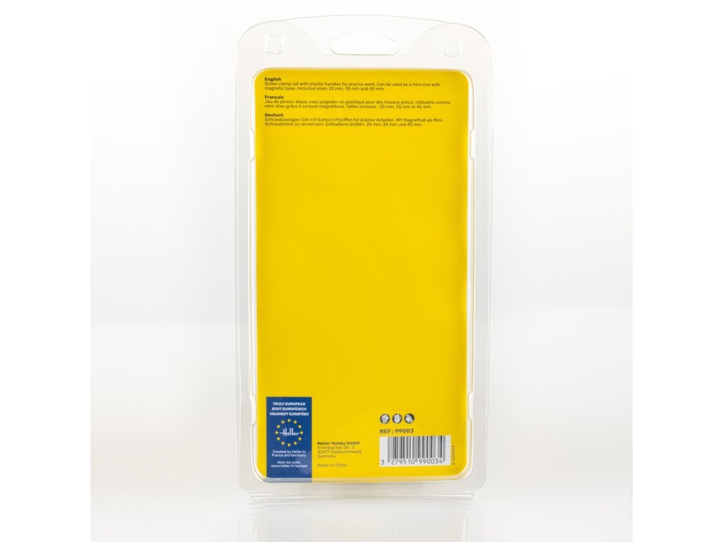 Sada svoriek s plastovými rukoväťami pre presnú prácu. Možno použiť ako mini zverák s magnetickou základňou. Dodávané veľkosti: 20 mm, 30 mm a 35 mm.