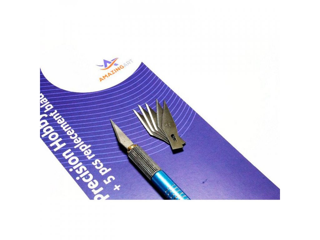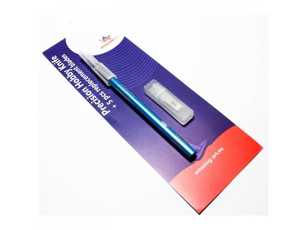 Kvalitný modelársky nôž s kovovou rúčkou v modrej farbe a protišmykovým ergonomickým povrchom. Vhodný pre všetky jemné modelárske alebo iné hobby práce. Súčasťou balenia je aj 5 náhradných čepelí.