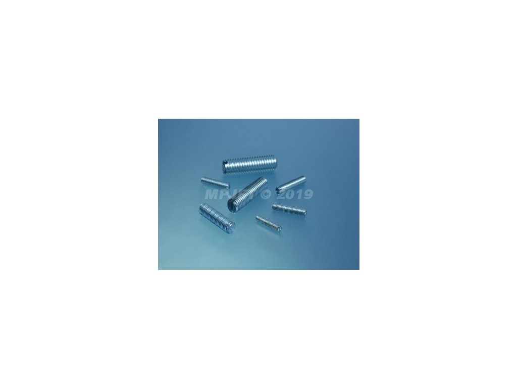 Presné oceľové nastavovacie imbus skrutky s drážkou a plochým koncom M2x10, DIN 551, povrchová úprava zinok.