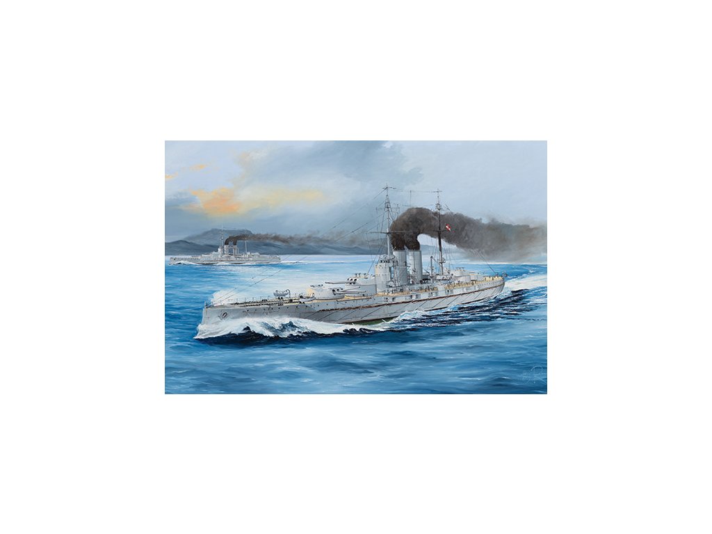 Stavebnica plastového modelu krížnika rakúsko-uhorského námorníctva z obdobia 1. svetovej vojny, na ktorom slúžili aj slovenskí námorníci.