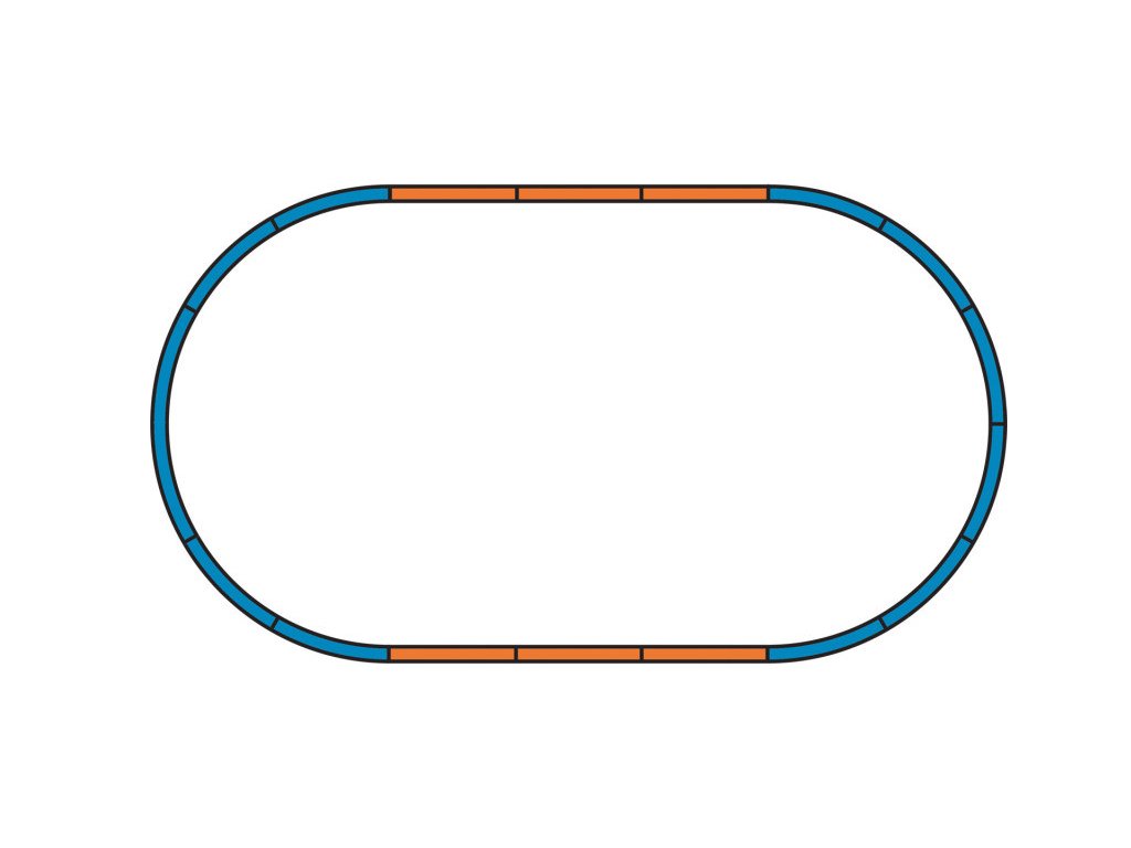 Základná sada modelovej železnice. Obsahuje všetko potrebné pre zostavenie koľajového okruhu a okamžitú prevádzku. Koľajový okruh je možné neobmedzene rozširovať dokupovaním jednotlivých koľají, alebo rozširovacích koľajových sád.