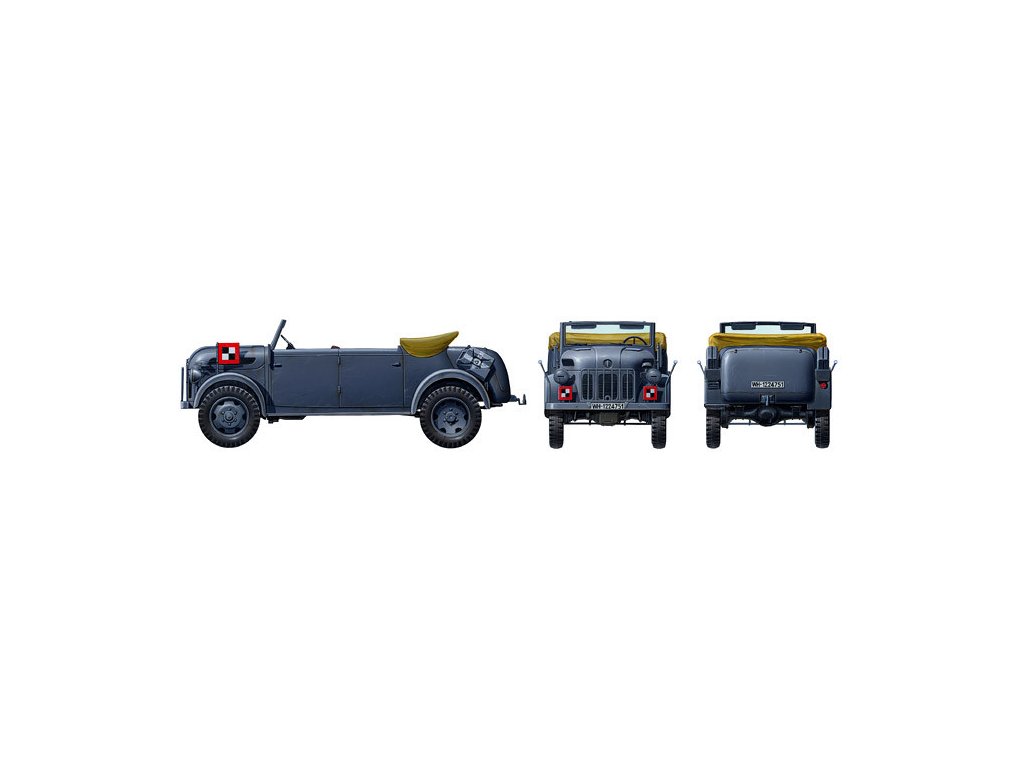 Stavebnica plastového modelu nemeckého veliteľského a štábneho vozidla z obdobia 2. svetovej vojny.