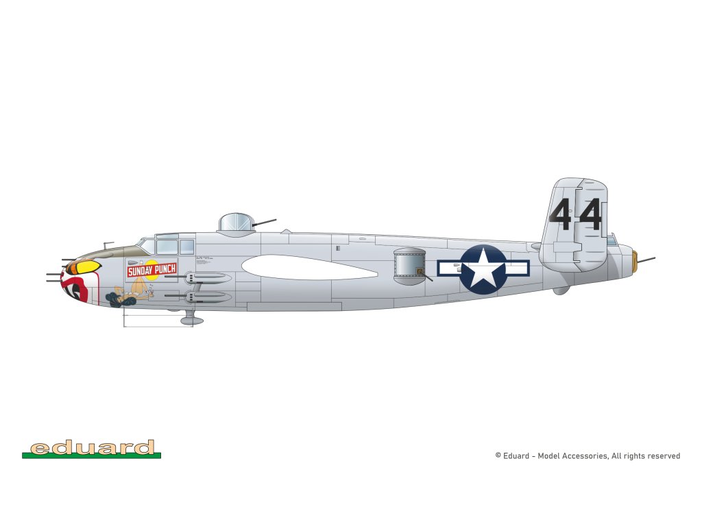 Stavebnica plastového modelu amerického stredného bombardéru používaného počas 2. svetovej vojny. Stavebnica umožňuje postaviť stroje s nepresklenou prednou časťou s ôsmimi až dvanástimi veľkorážovými guľometmi určených na útoky v nízkej výške pri bojoch v Pacifiku a v juhovýchodnej Ázii.