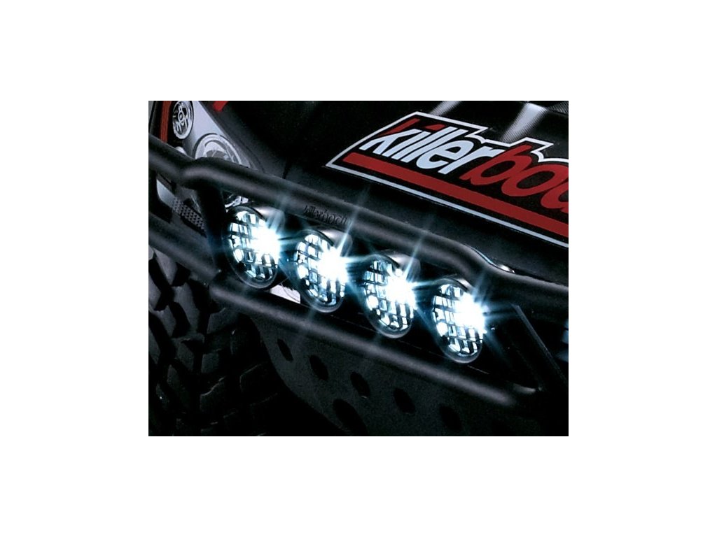 Plastové výlisky pre zostavenie svetelnej rampy určenej pre modely triedy Short Course, alebo modelov s dostatočne širokou prednou maskou. Počet reflektorov 4. Každý reflektor je vybavený chromovanou vnútornou parabolou, čo výrazne zlepšuje svietivosť a výsledkom je úžasný svetelný dosah. Vonkajší priemer reflektora je 17mm. Do reflektorov sa montujú LED s priemerom 5mm. Pozor, súčasťou reflektorov nie sú sklíčka, ale len ochranné mriežky.