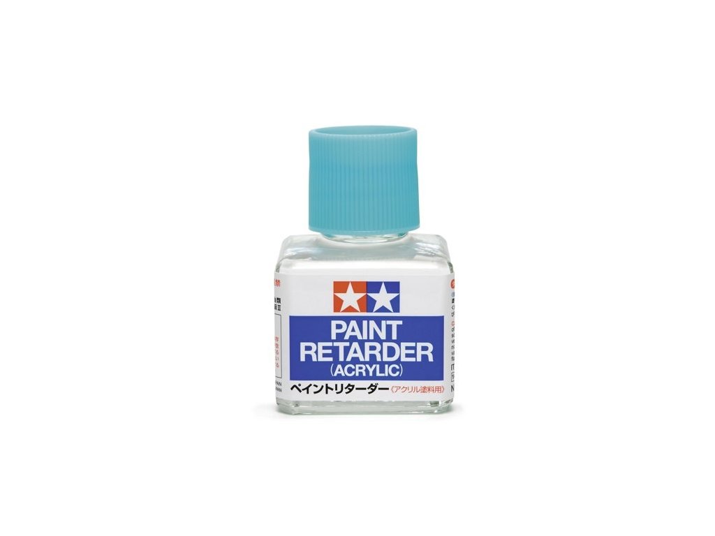 Spomaľovač schnutia pre akrylové farby Tamiya radu X-xx a XF-xx slúži na mierne spomalenie zasychania farby v tenkej vrstve. Pri niektorých prácach so striekacou pištoľou (tenké čiary, vysoký pracovný tlak vzduchu,...) akrylová farba môže zasychať príliš rýchlo, usádza sa na tryske a hrote ihly, alebo zasychá ešte pred dopadom na striekaný povrch. V takom prípade je vhodné použiť Tamiya Paint Retarder, ktorý mierne spomalí zasychanie farby a zlepší komfort pri striekaní.