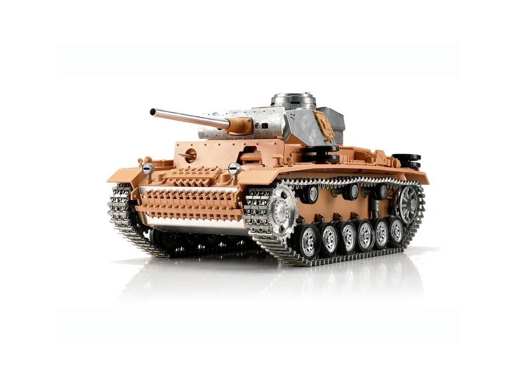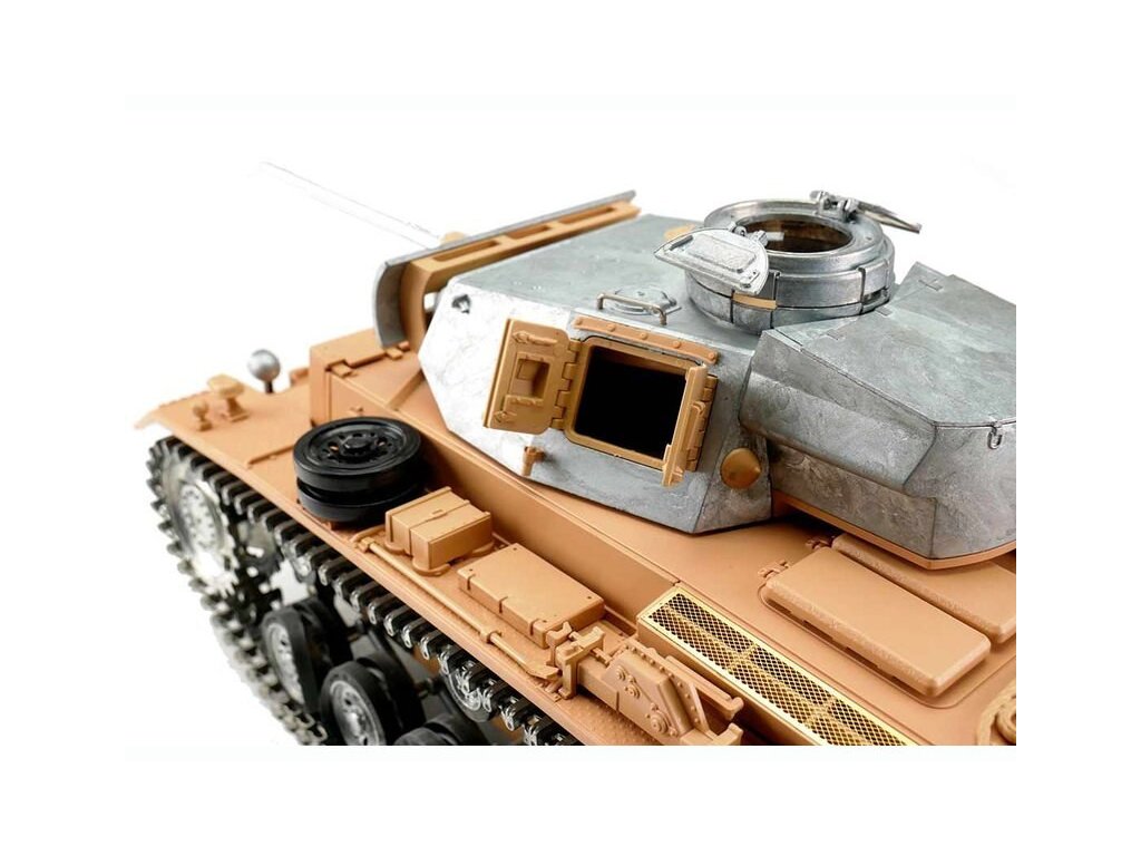 Model nemeckého tanku Panzer III bez kamufláže na diaľkové ovládanie (RC model). Kompletná sada s príslušenstvom, s elektrickým pohonom, verne simuluje väčšinu funkcií skutočného tanku. Je vybavený realistickým podvozkom s funkčnými pásmi, hnacími, pojazdovými a napínacími kolesami, ktoré umožňujú jazdu dopredu, dozadu a zatáčanie. Diaľkovo je riadené aj otáčanie veže a námer dela (spúšťanie a zdvíhanie hlavne). Model má zabudovaný infračervený kanón, pri jazde viacerých takto vybavených modelov je možné simulovať rôzne bitky (nestrieľa guličky). Simuláciu dopĺňa zvukový modul imitujúca zvuk motora a generátor dymu. Dlhá doba jazdenia je zabezpečená akumulátorom Ni-MH s vysokou kapacitou.