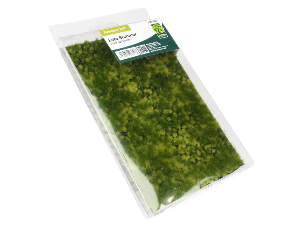 Hárok statických trsov trávy / kríkov v dvoch rôznych výškach 2 mm a 6 mm ideálnych na vytvorenie prirodzeného a nerovnomerného vegetačného porastu v dioráme alebo vláčikovej krajinke. Jednotlivé trsy sa dajú z fólie odlepiť a pomocou lepidla aplikovať na požadované miesto. Vhodné pre použitie v mierkach 1/35, 1/48 a 1/72.