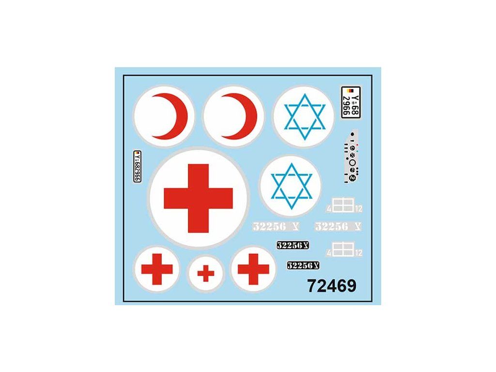 Stavebnica plastového modelu nemeckého vojenského vozidla z obdobia 50. rokov minulého storočia.