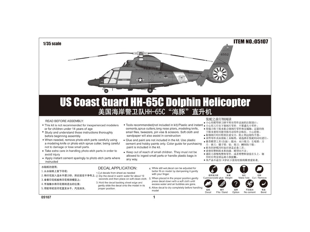 US Coast Guard HH-65C Dolphin Helicopter 1/35 Trumpeter 05107