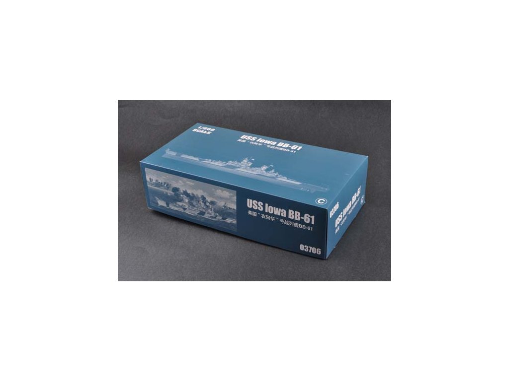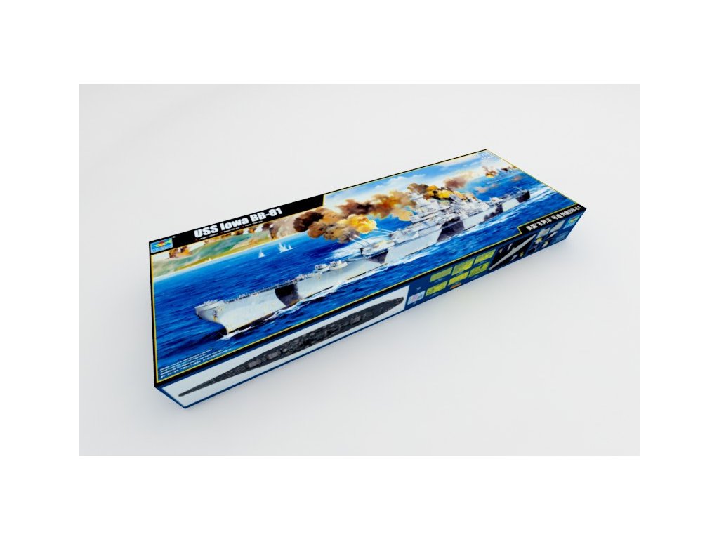 Stavebnica plastového modelu americkej bitevnej lode z obdobia 2. svetovej vojny. Iowa bola spustená na vodu 27. augusta 1942 a do služby vstúpila 22. marca nasledujúceho roku. V roku 1944 bola presunutá do Tichého oceánu a pripojila sa k tichomorskej flotile počas bitkiek na Mariánskych ostrovoch a o Marshallove ostrovy, v námorných bitkách o Leyte, v Perzskom zálive a ďalších bitkách. Zapojila sa do kórejskej vojny v 50. rokoch 20. storočia. Po vojne slúžila ako cvičná loď. Znovu zaradená do služby bhola v 80. rokoch, ale po výbuchu veže 17. apríla 1989 pri ktorom zahynulo 47 námorníkov bola Iowa vyradená z prevádzky v 1990.