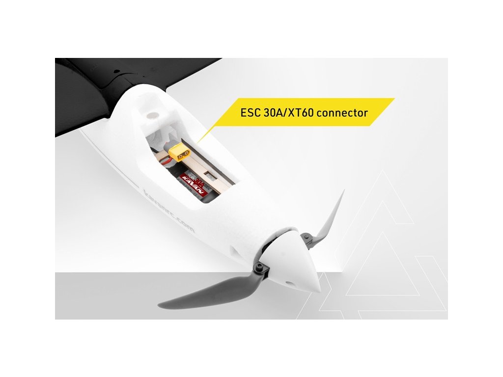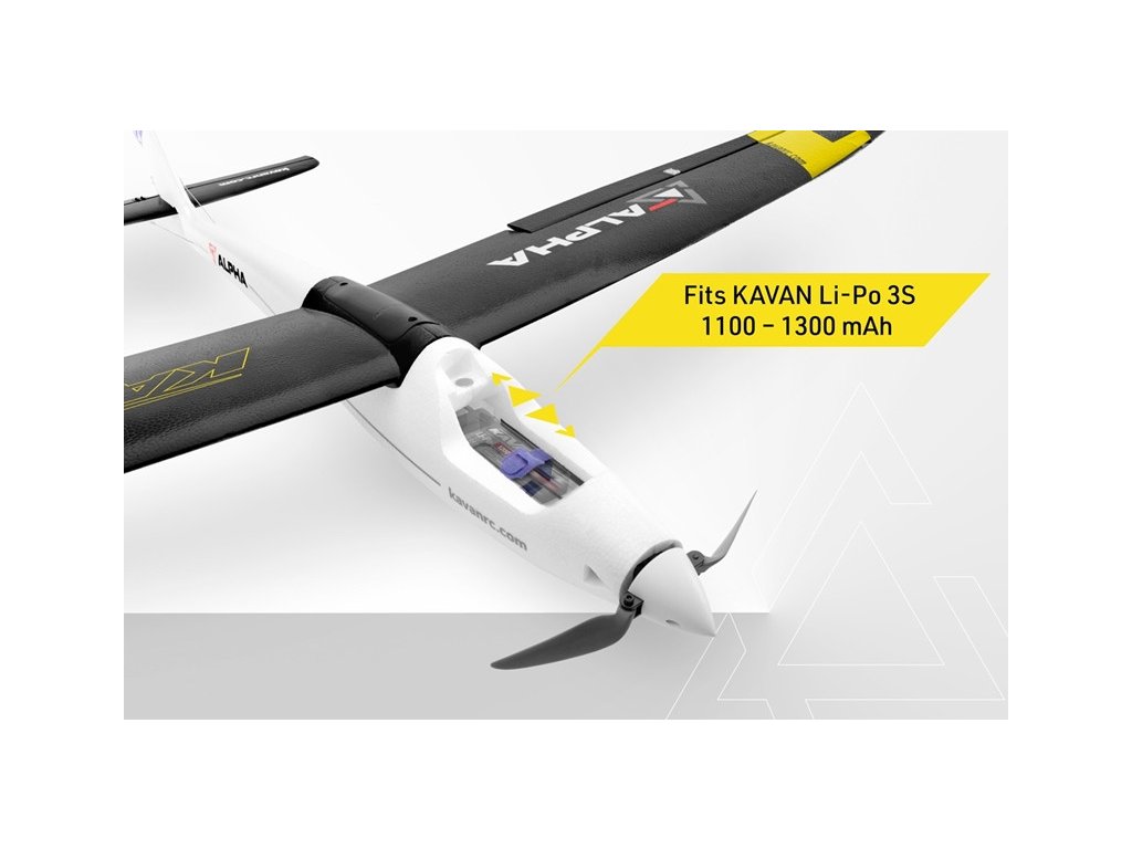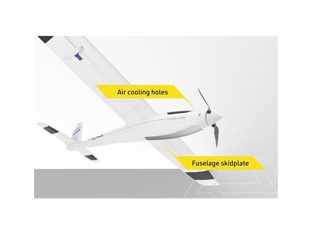 Obsah balenia: trup vylisovaný z EPO s namontovaným striedavým motorom, sklopnou vrtuľou 8,5x5", regulátorom otáčok KAVAN 30A a 2 servami KAVAN GO-09, krídlo vylisované z EPO s inštalovanými 2 servami KAVAN GO-09 a LED svetlami, chvostové plochy z EPO, oceľovú spojku krídla a podrobný návod na stavbu a lietanie.