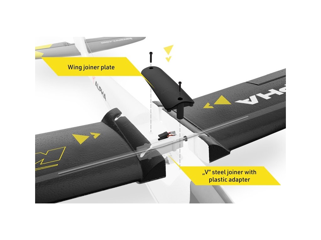 Hoci zvonka zachováva rysy pôvodnej Alphy 1500, je ALPHA 1500 V2 úplne nový model s odlišnými rozmermi, novým profilom krídla a ďaleko prepracovanejšou konštrukciou. Nové formy a pokrok v technológii lisovania penových plastov zaručujú, že všetky diely sú oveľa jemnejšie a presnejšie. Dvojdielne krídlo sa teraz k trupu upevňuje skrutkami rovnako ako chvostové plochy, takže model je veľmi skladný. O triedu výkonnejší motor s 30A regulátorom a 3S LiPo akumulátorom namiesto pôvodného dvojčlánku poskytujú dostatok výkonu nielen na bežné poletovanie s motorovým vetroňom, ale aj na lietanie akrobacie. ALPHA 1500 V2 tak „porastie“ spolu s vami a vašimi pilotnými schopnosťami; skúsenému pilotovi ponúkne možnosť sa poriadne vyblázniť!ALPHA 1500V2 je elegantný motorový vetroň s veľkou nosnou plochou s ovládanými krídelkami, smerovkou aj výškovkou poháňaný výkonným striedavým motorom. Robustná - a pritom veľmi ľahká - konštrukcia z penového EPO zaručuje vynikajúcu odolnosť proti poškodeniu pri havárii alebo aspoň veľmi ľahkú opraviteľnosť, pokiaľ už k nejakej škode dôjde. Pre napájanie motora slúži ľahký LiPo akumulátor s veľkou kapacitou a model je ovládaný osemkanálovou RC súpravou 2,4 GHz FHSS zaisťujúcou vysokú odolnosť voči rušeniu. Jednoducho sme sa postarali o to, aby ste mali cestu k úspechu dokorán otvorenú, a vaše prvé kroky nekomplikovali starosti "materiálnej povahy".