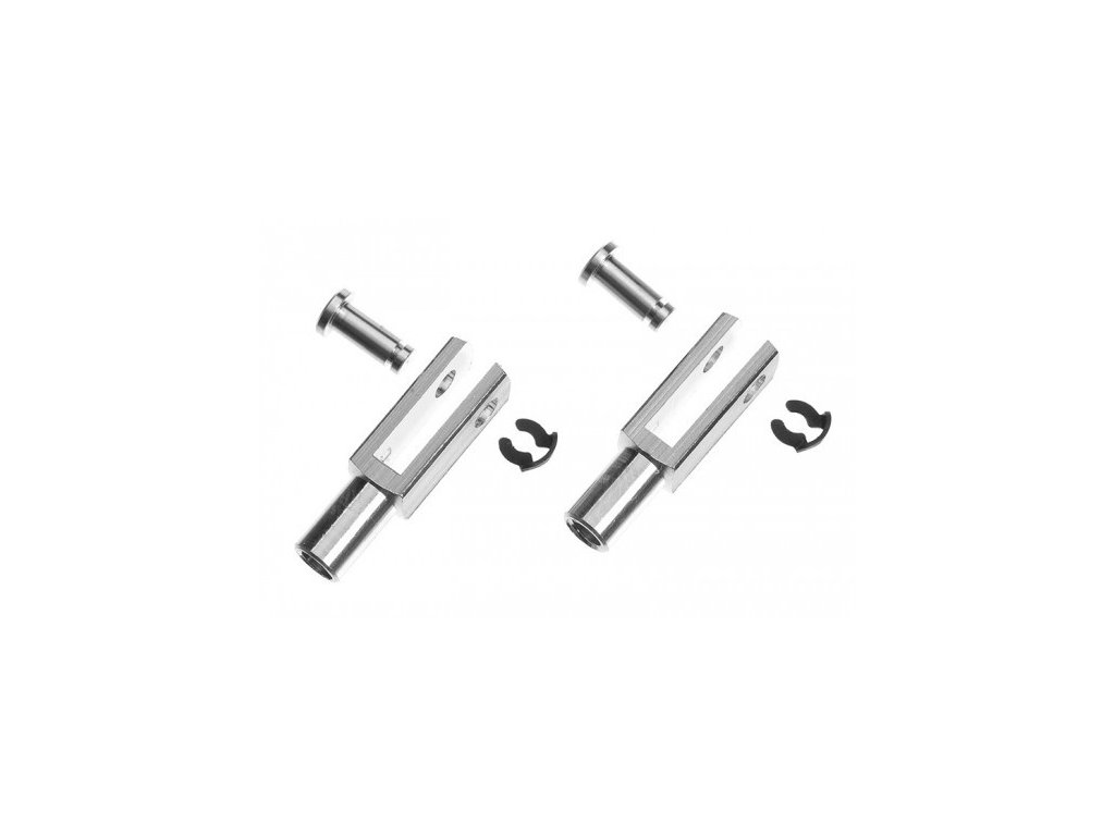 Celokovová vidlička s celkovou dĺžkou 23 mm, čapom o pr.1,6 mm a vnútorným pravým závitom M 2,5 pre naskrutkovanie na tiahlo, šírka drážky pre ovládaciu páku je 1,6 mm. Materiálom telesa je dural, sústružený oceľový černený čap je proti vypadnutiu istený záchytným krúžkom o veľkosti 1,2 mm.