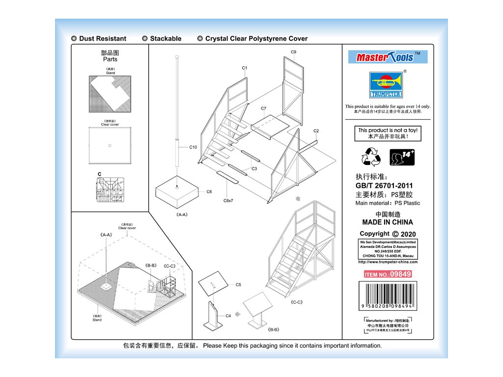 Plastová krabica určená pre vystavenie modelu, alebo malej diorámy. Podstavec je zakrytý kvalitným priehľadným plastovým krytom. Pozor, nie je odolný proti poškrabaniu. Určené pre modely v mierkach 1/35 a 1/18. Súčasťou balenia sú aj plastové diely.