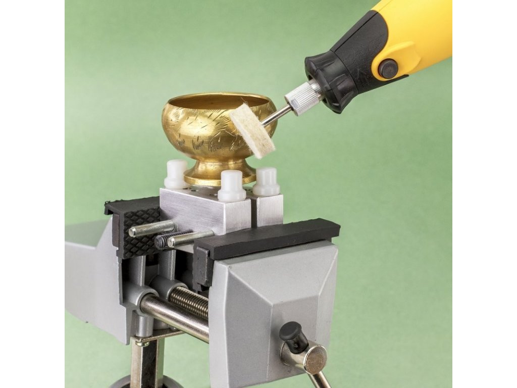 Mini zverák určený na presné modelárske alebo iné hobby činnosti. Nylonové kryty na čeľustiach zaručujú, že držaný predmet sa pri práci nepoškodí.