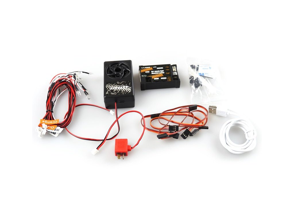 Svetelný a zvukový modul pre RC modely áut. Obsahuje bohatú knižnicu zvukov. Nastavenie je možné cez počítač s detailným nastavením rôznych veličín.